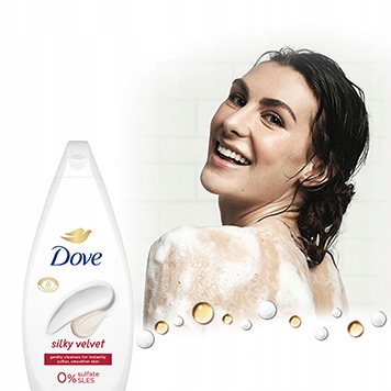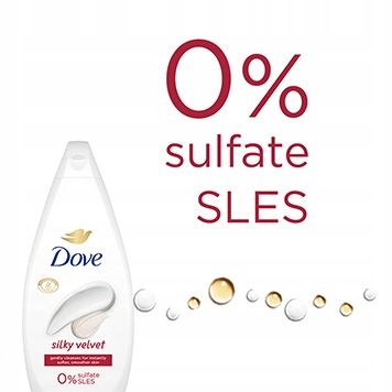 Гелі для ванн Dove Essential для жінок не містять агресивних очищувальних речовин, наприклад сульфатів, таких як SLS або SLES, які можуть пошкодити захисний бар’єр шкіри та подразнити її. Цей продукт означає 0% SLES і 100% м'які очищувальні інгредієнти, які захищають природне зволоження шкіри.