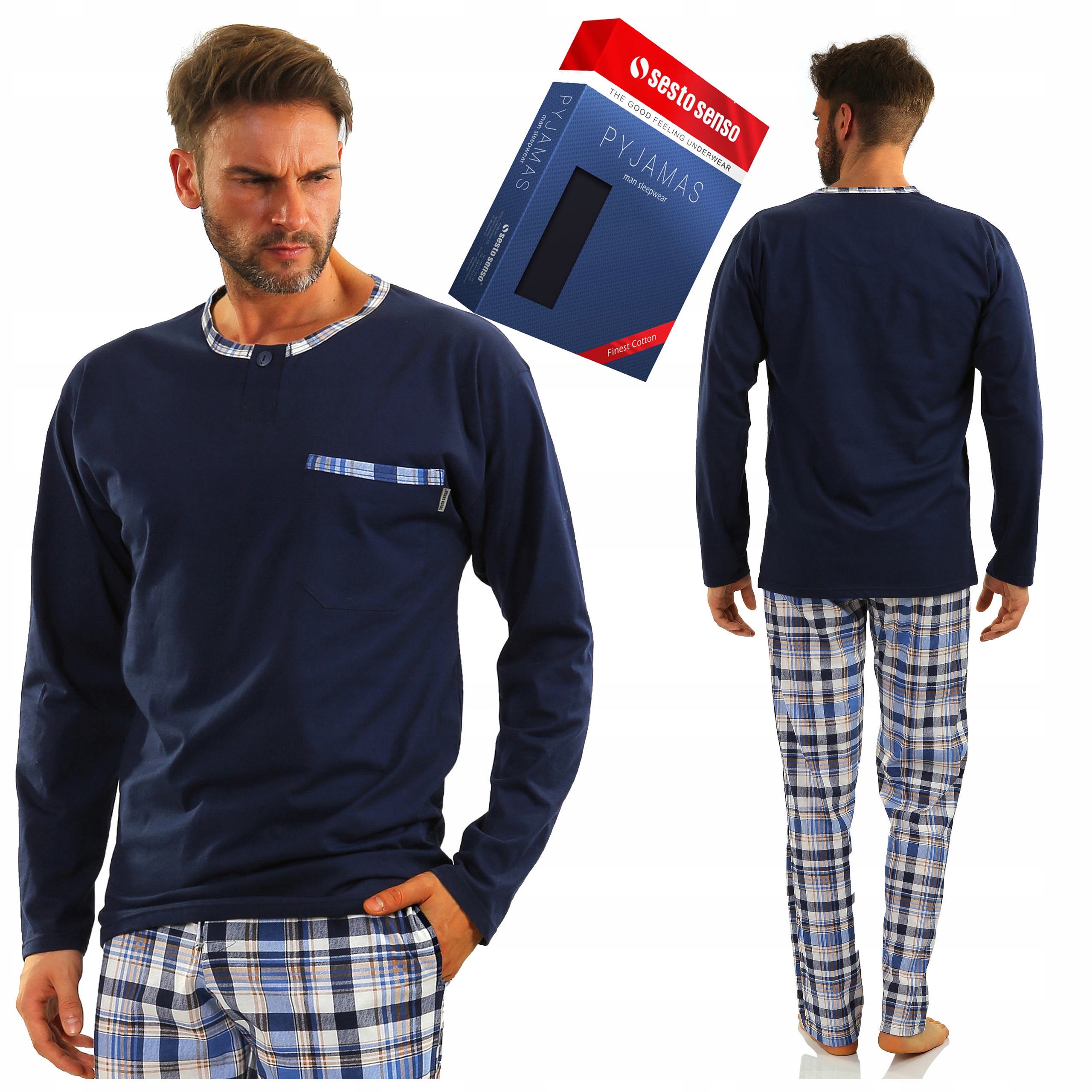 Надзвичайно зручна м'яка піжама Sesto Senso з двох частин є ідеальним вибором для чоловіків, які цінують повсякденний стиль. Топ із довгими рукавами, круглим вирізом горловини та невеликою кишенею, оздоблений окантовкою в тон штанів. Довгі вільні брюки в модну клітку з широким еластичним поясом, додатково застібаються на шнурок, також мають шліф на два ґудзики та зручні кишені з боків. Піжама виготовлена з високоякісної дихаючої бавовни. Ідеально підходить для будь-якої пори року.