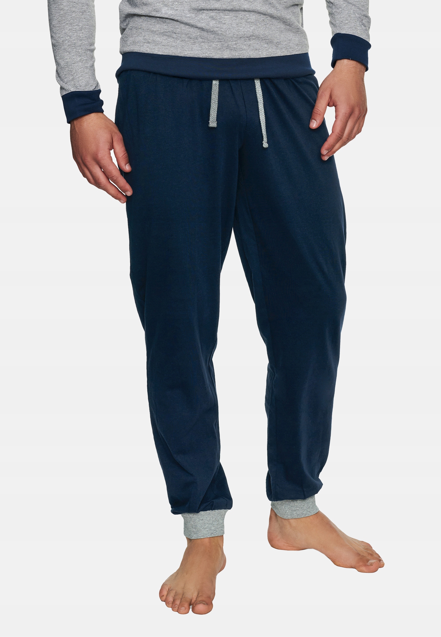 Піжама не сковує рухів і забезпечує комфорт під час сну. Футболка з довгим рукавом і круглим вирізом. Посередині сорочки розміщені написи про життя в гармонії з природою та аплікація із зображенням ведмедя. Вільні, довгі штани - однотонні. Не стискає, еластична гума в тунелі (внутрішня гума) на талії. Додатково шнурок під колір сорочки для регулювання окружності. Кольори: сірий, темно-синій. Футболка та штани оздоблені манжетами. Кольори не вицвітають, а піжама зберігає форму навіть після багаторазового прання. М'який на дотик виріб з високоякісної бавовни, упакований в естетичну міцну коробку. Склад: футболка 85% вишукана бавовна 15% віскоза, брюки 100% бавовна.