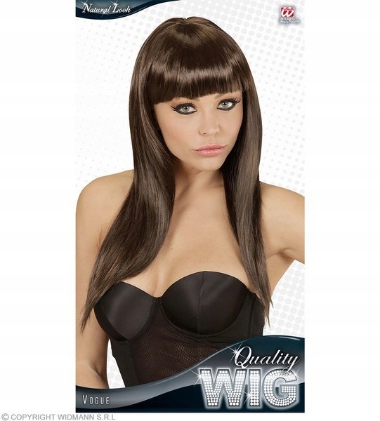 Колір перуки: коричневий. Волосся до плечей, пряме, з чубчиком. Волосся сяють і виглядають природно. Встановлюється на гнучку сітку. Універсальний розмір.