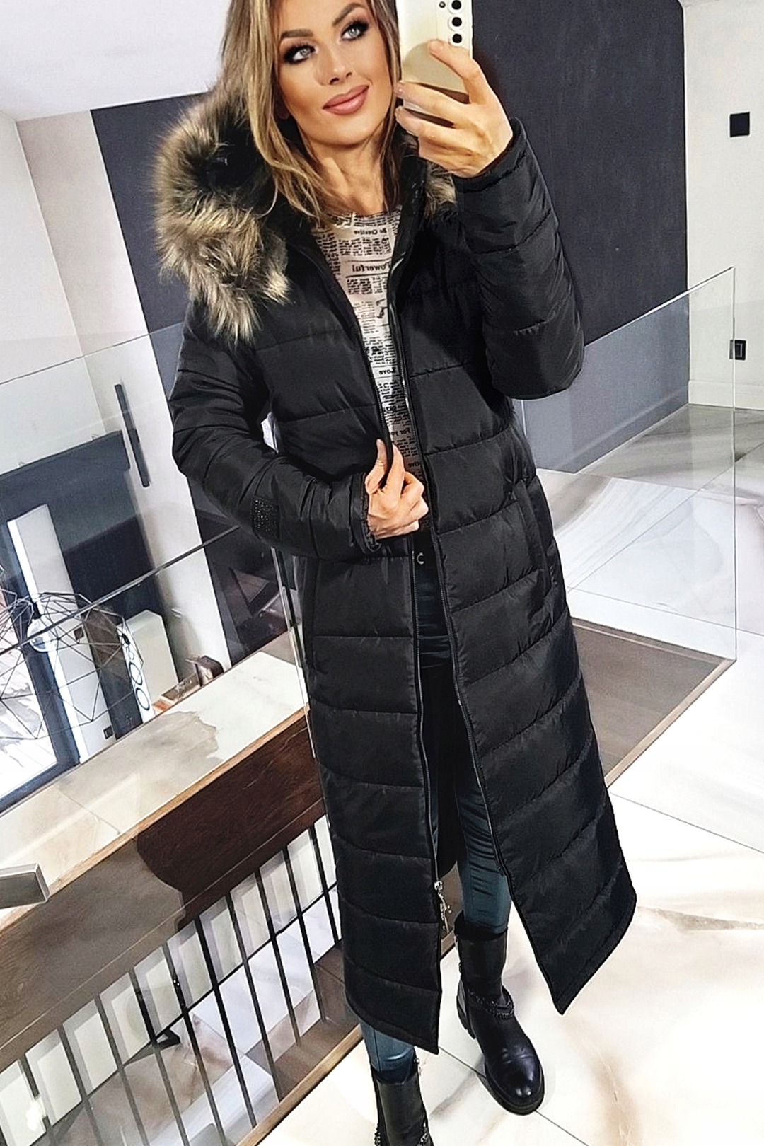 K0054 BK FUR M-1 | ДОВГА КУРТКА З ХУТРОМ КЛАСИЧНА СТЕГАНА ШУБА СТИЛЬНЕ ХУТРО M