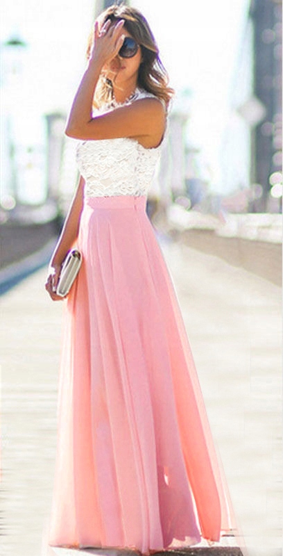 Сукня має красивий верх із мережива з екри та низ із рожевого шифону. Ідеально підходить для будь-якого випадку, ідеально підходить для виходу, побачення, весілля чи іншого свята.