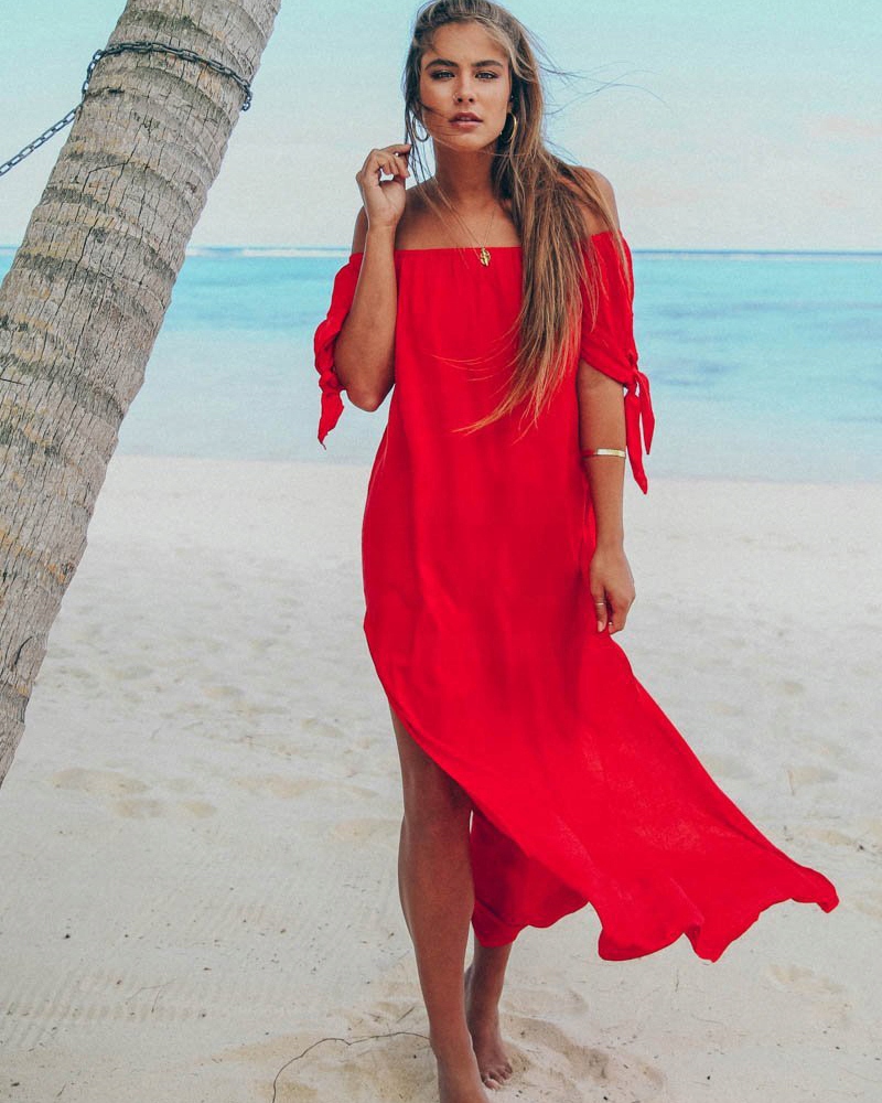 ПОВІТРЯНА СУКНЯ МАКСІ З ВІДКРИТИМИ ПЛЕЧАМИ