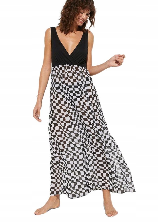 ДОВГА ПЛЯЖНА ТУНІКА В КЛЕТКУ НА БРЕТЛЯХ _IN B.P.C 42