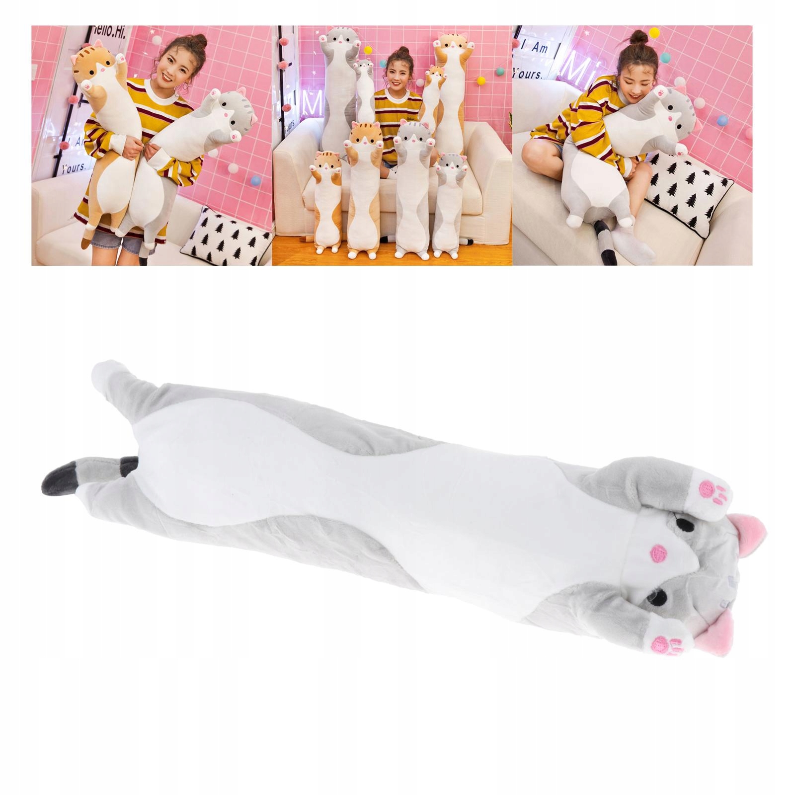 Довга подушка для сну. Мила плюшева лялька-кіт