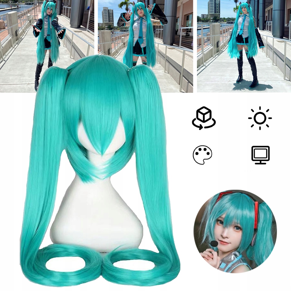 Двосторонні прямі перуки з двостороннім хвостиком для косплею Міку в стилі аніме