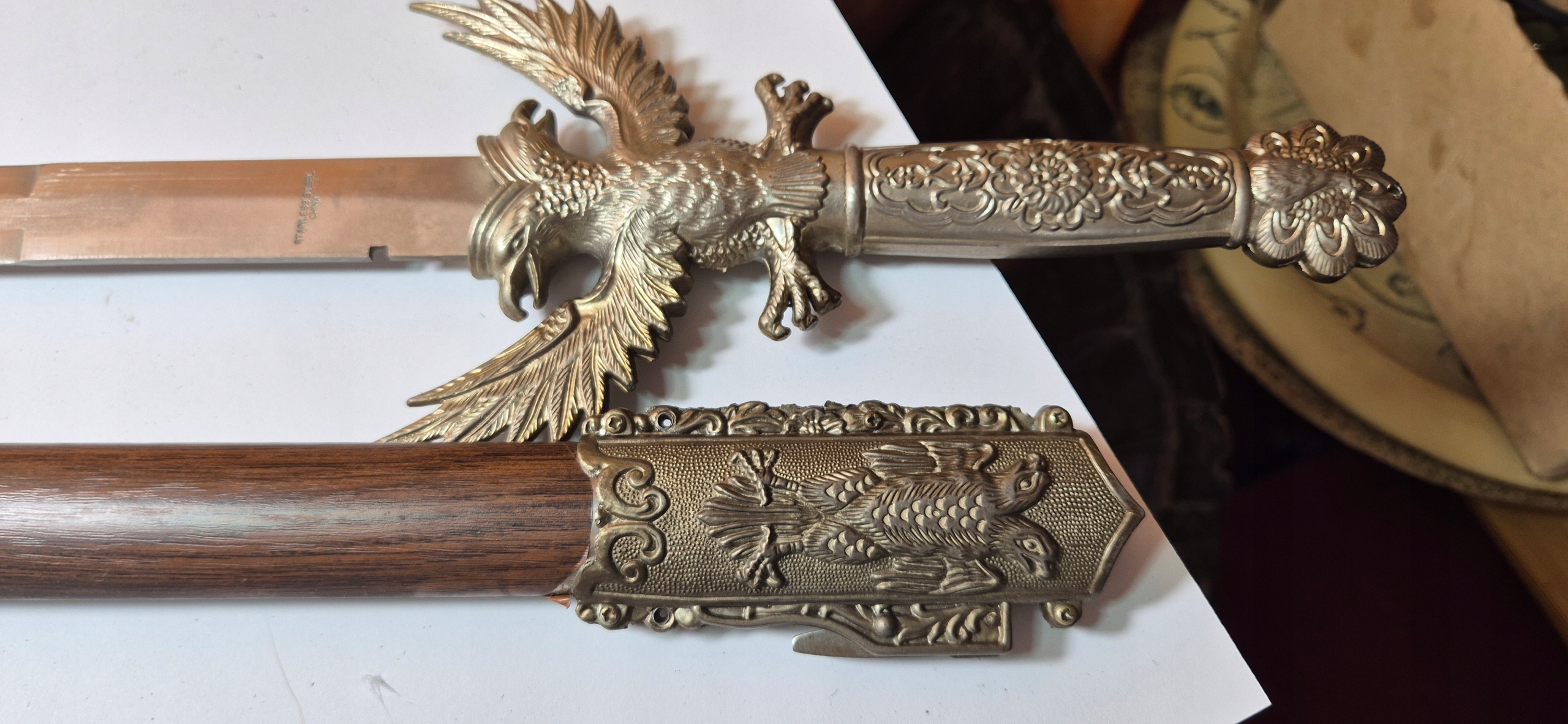 Просматривая «Реплика с длинным мечом винтажной сабли над камином в отличном состоянии», вы можете быть уверены, что данный товар из каталога «Реплики холодного оружия» будет доставлен из Польши и проверен на целостность. В цене товара, указанной на сайте, учтена доставка из Польши. Внимание!!! Товары для Евросоюза, согласно законодательству стран Евросоюза, могут отличаться упаковкой или наполнением.
