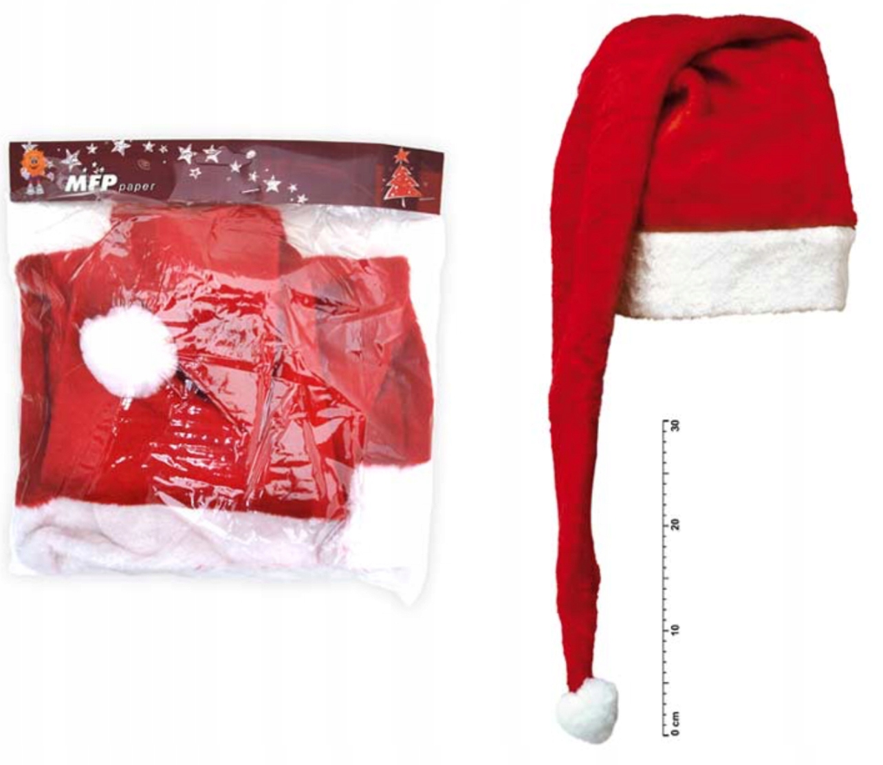 Довга шапка Діда Мороза, велюрова шапка для Діда Мороза, червона шапка