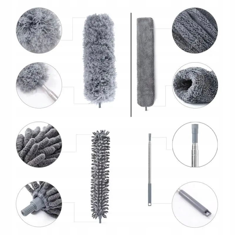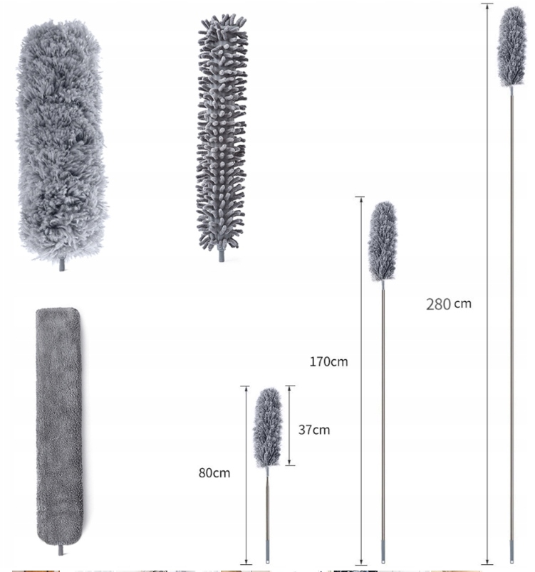 Завдяки цій щітці з телескопічною ручкою ми можемо легко досягати різних поверхонь у будинку, від підлоги до стелі, без необхідності тягнутися до додаткових інструментів. Ідеально підходить для видалення пилу, бруду та павутини з меблів, підлоги, вікон та інших поверхонь, забезпечуючи повне прибирання без необхідності використання додаткових аксесуарів.