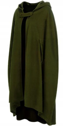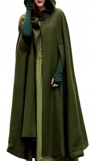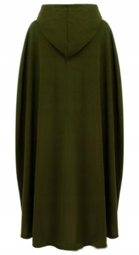 Елегантна довга накидка глибокого оливково-зеленого відтінку ідеальна для людей, які цінують унікальний таємничий стиль. Виготовлений з м'якого матеріалу, який красиво драпірується під час руху. Класичний капюшон і просторий крій надають йому характеру, натхненного середньовічною, фантастичною та готичною модою.
