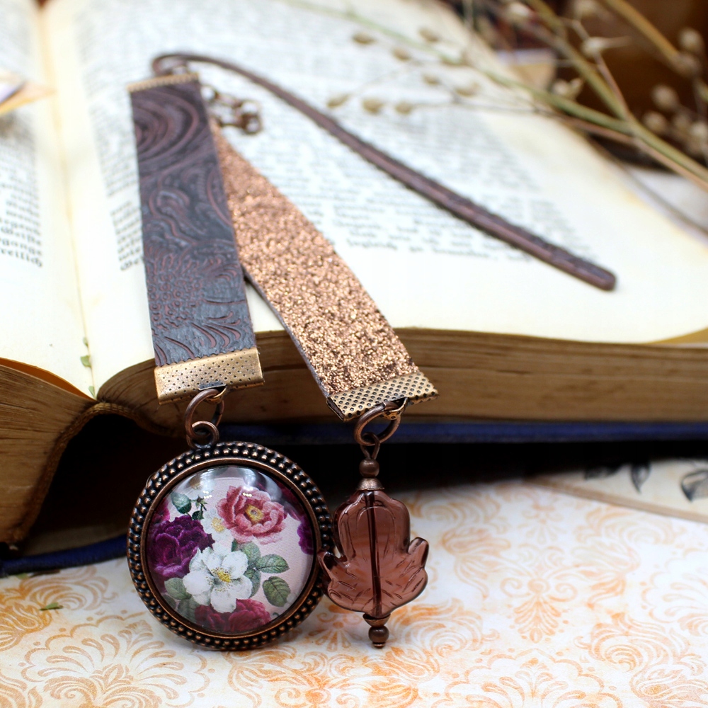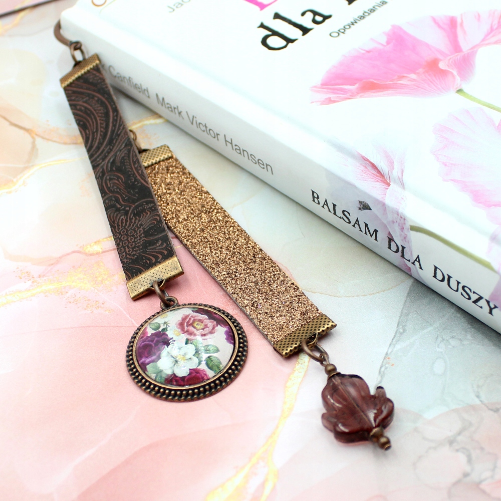 Довга закладка квіти вінтажна мідь