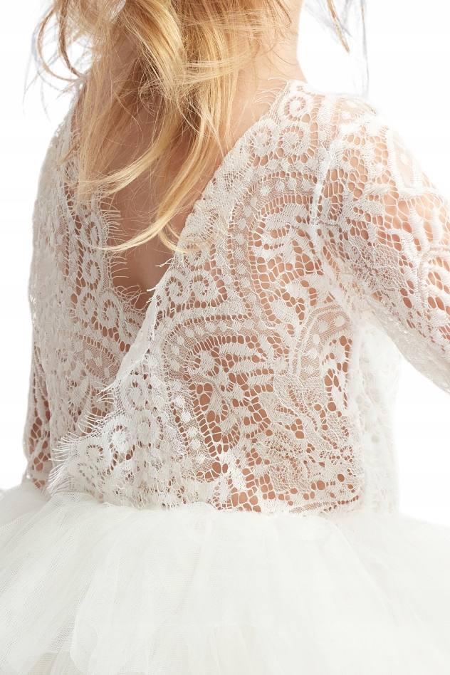 Гарне, ошатне урочисте плаття для дитини дев'яти років. Це біле плаття ангела з тюлевими воланами ідеально підходить для особливих випадків. Його ангельський виріз на спині додає шарму, підкреслюючи красу вашої дитини.