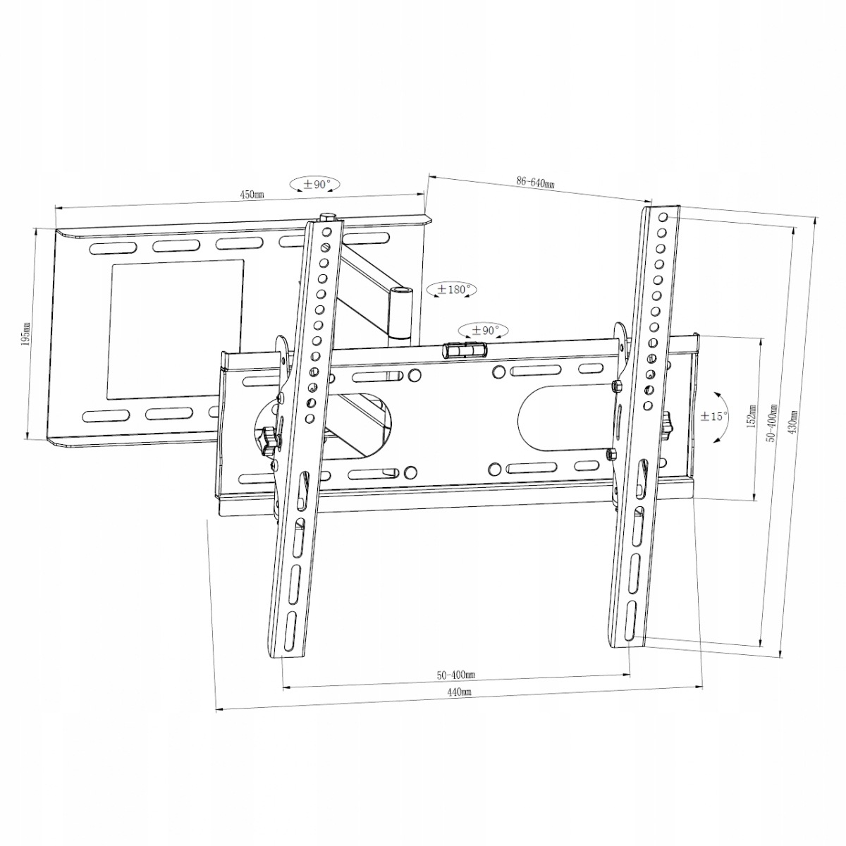 - Дуже довгий кронштейн 64 см — дозволяє повертати телевізор на будь-який кут. Обертання телевізора більше не блокуватиме занадто коротка рука.