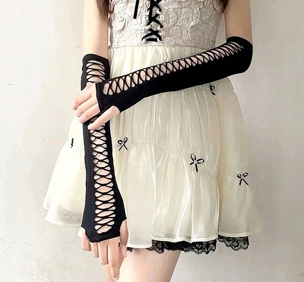 Довгі еластичні рукавички, чорні рукавиці Disco