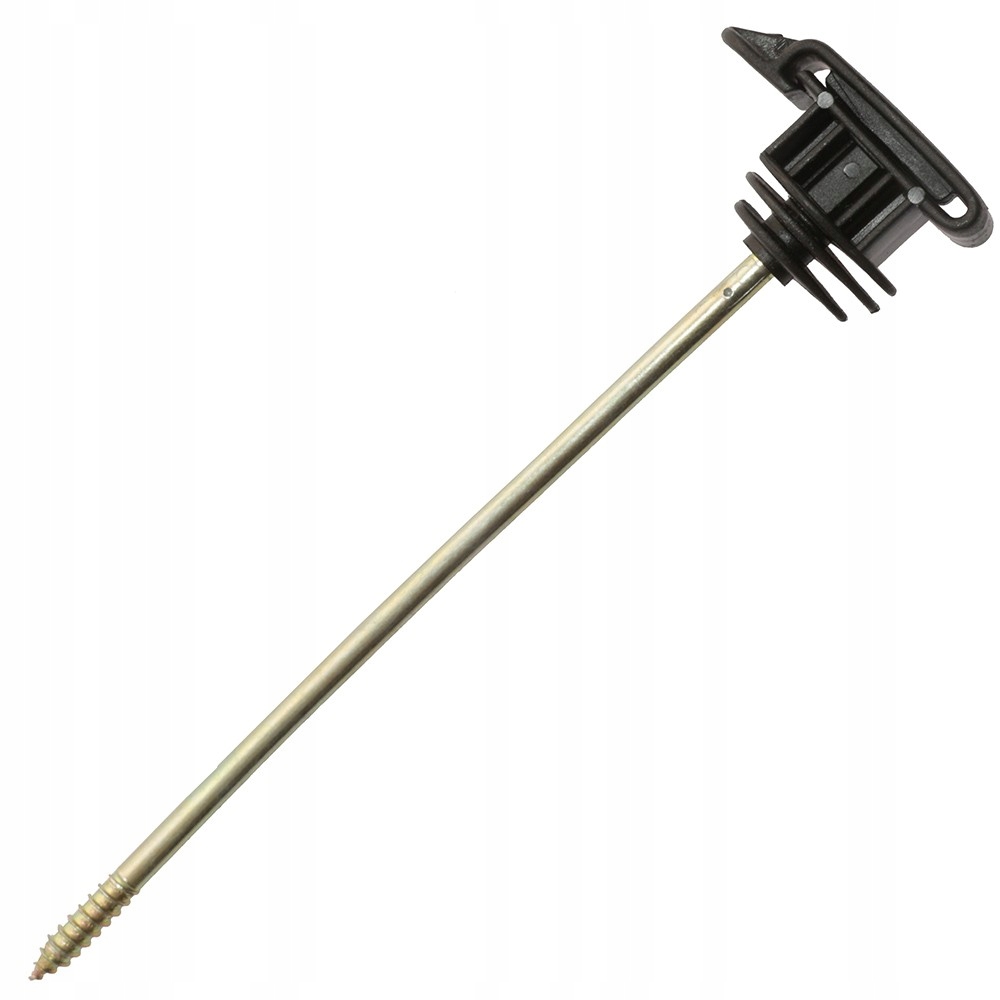 Ізолятор з довгим штирем, призначений для спрямування стрічки шириною до 40 мм. Штифт ізолятора закінчується гвинтом по дереву. Пропонований утеплювач дозволяє відсунути пастушу стрічку від огорожі.