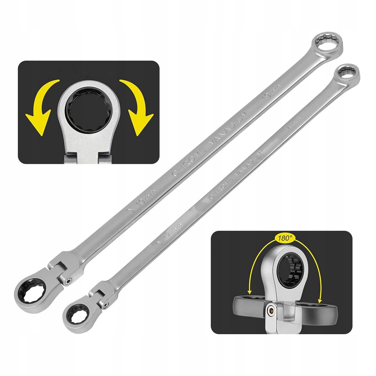 ДОВГІ КІЛЬЦЕВІ КЛЮЧІ З ХРАПОВИКОМ, ЗЛАМАНІ НА З'ЄДНАННІ РУЧКА 8-24 ММ
