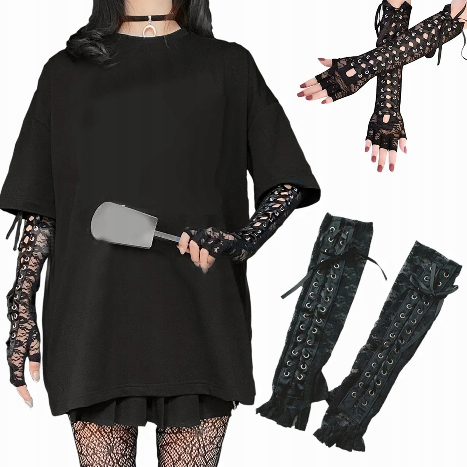 Довгі мереживні рукавички для весілля та вечірки, чорні для рольових ігор, вільний розмір