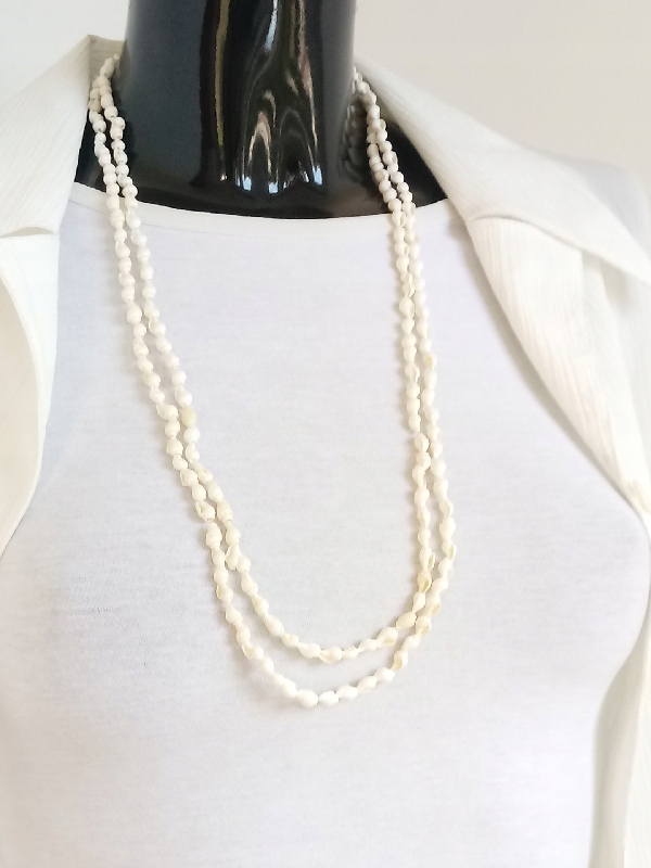 Довгі намистини, виготовлені з невеликих натуральних снарядів, білих морських снарядів намистин