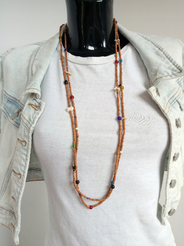 Довгі намистини бохо, дерев'яні намистини, коричневі східні скляні намистини