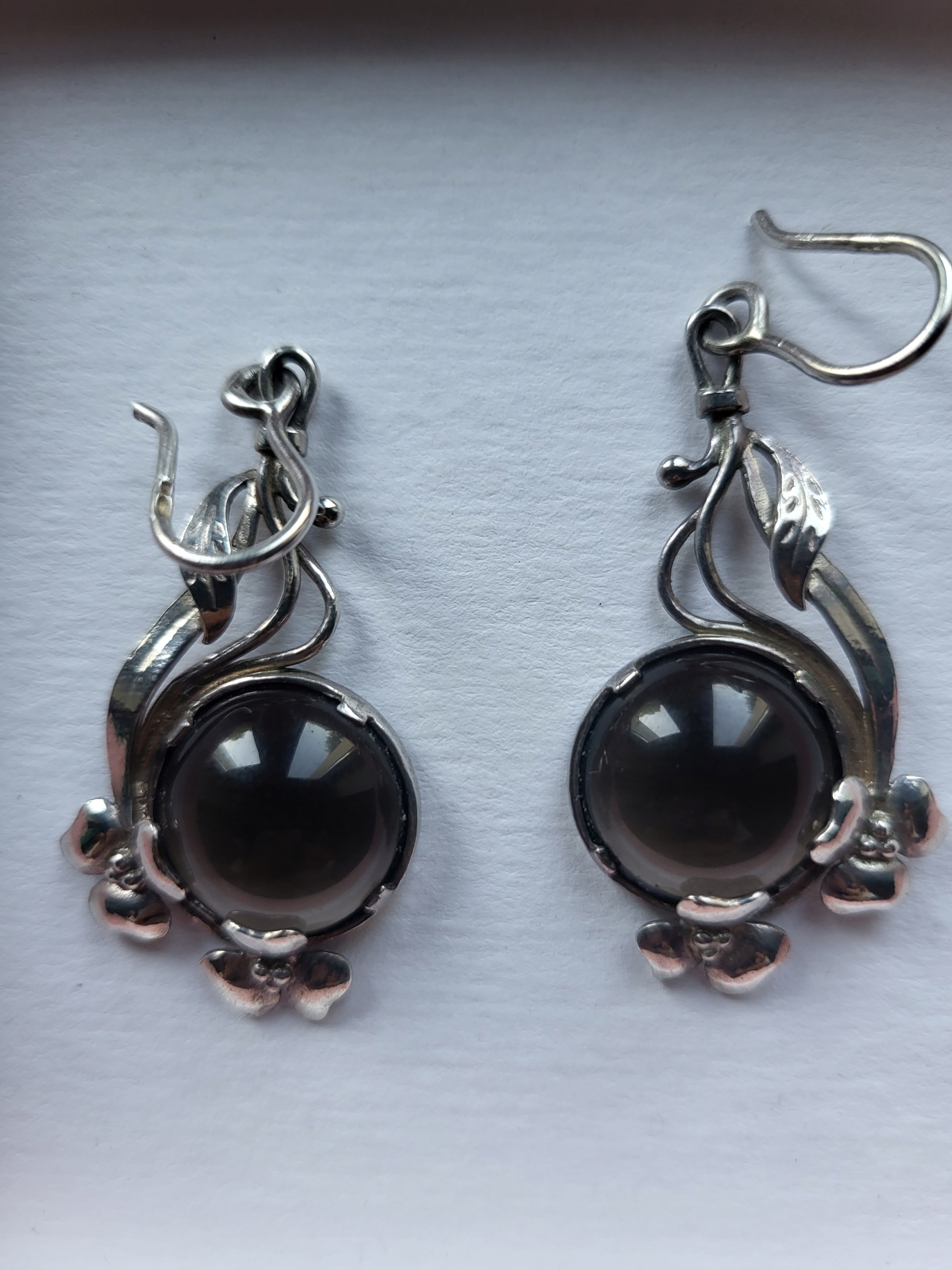 ФЕНОМЕНАЛЬНА ГОНКА АРТ-ДЕКО Гарні сережки виробництва СРСР, стиль ОРНО, круглий камінь, димчастий кварц, злегка прозорі. Загальна довжина з гачком прибл. 5,5 см, діаметр елемента з каменем бл. 2 см. Пробійки штамповані на гачку, подвійні, важко читаються. Продаж власної колекції багатьох поколінь. я запрошую. Дуже хороший стан.