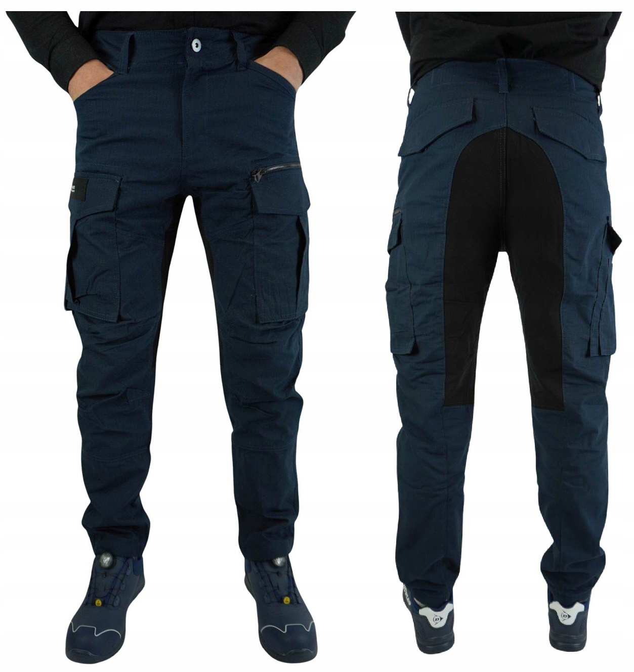 Штани унікального вигляду ідеально підходять як для роботи, так і для щоденного використання. Вони забезпечують високий рівень комфорту та довговічності завдяки використанню ріп-стоп та стрейч-матеріалу (в промежині). Функціональний завдяки восьми кишеням. Дві великі кишені карго на стегнах з клапанами, що застібаються на кнопки, одна з додатковою кишенею на блискавці і вузька кишеня для інструментів. Крім того, класичні кишені на стегнах, посилені додатковою стрічкою по краях, і задні кишені з клапанами на кнопках. Можливість регулювання ширини ніжок завдяки вбудованій стрічці. Спеціально профільовані коліна для кращої рухливості.