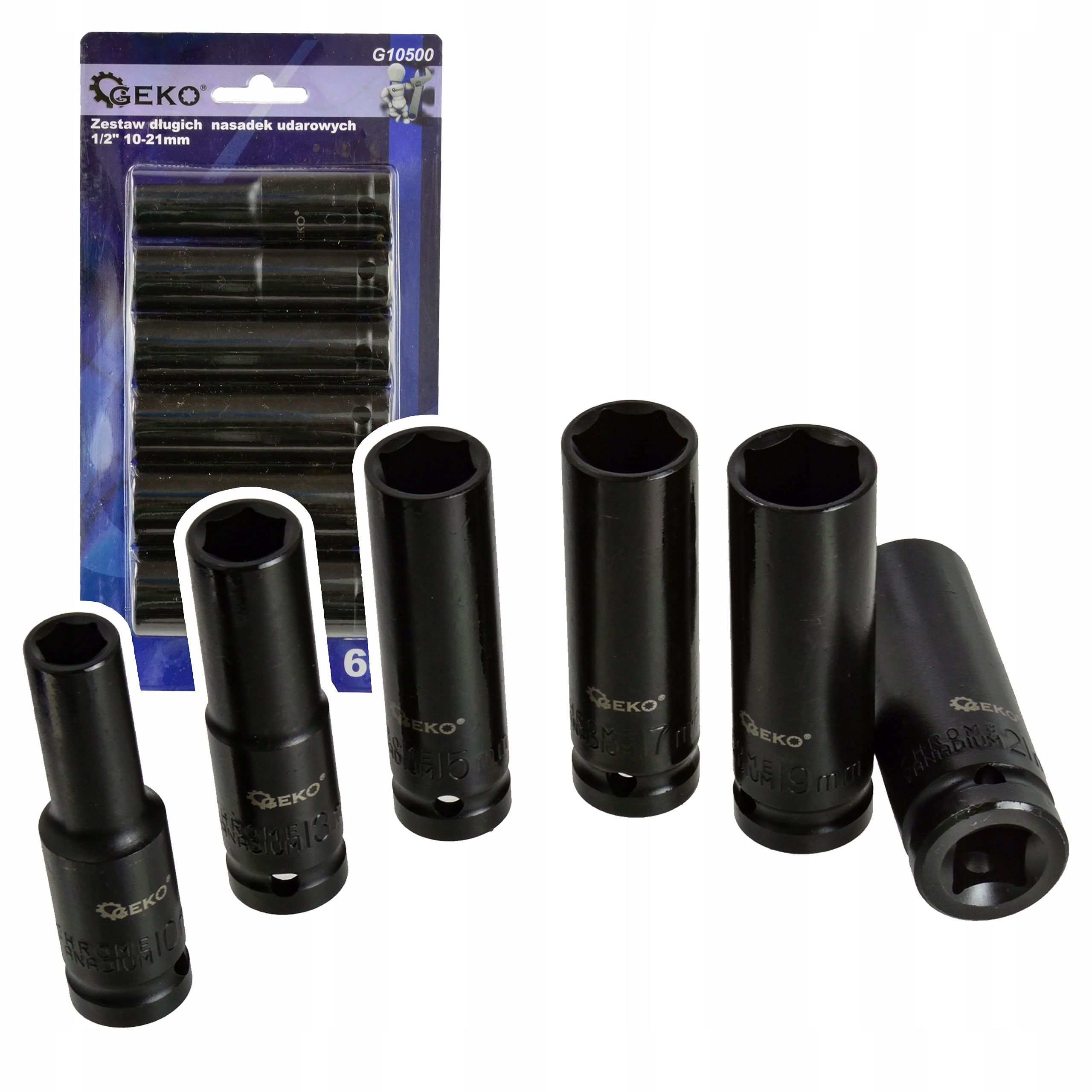 ⭐ Набір із 6 довгих ударних головок 1/2" 10-21 мм - сталь Cr-V