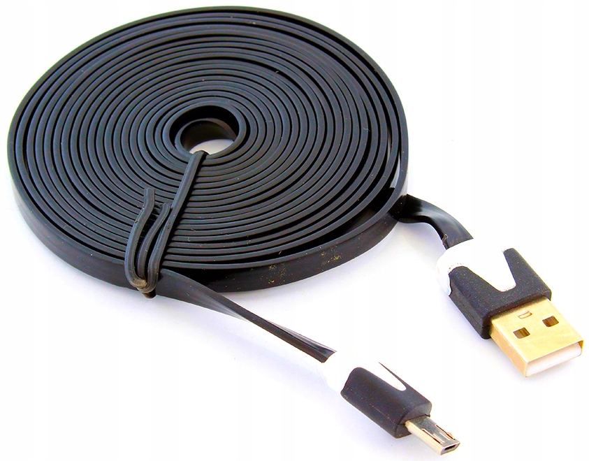 ДОВГИЙ 3 м кабель micro-USB мікро USB, чорний ПЛОСКИЙ