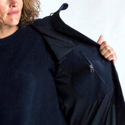Ця довга штормова куртка має 5 кишень: - дві кишені на флісовій підкладці, розташовані під грудьми, щоб зберегти руки в теплі, - дві просторі кишені під нагрудними кишенями, - одна внутрішня кишеня зліва.