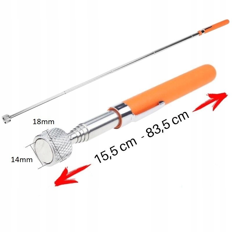Кінець телескопічної руки - це сильний магніт, який гарантує деякий і ефективне підняття металевих предметів. Незалежно від їх форми, наш магніт може легко впоратися.