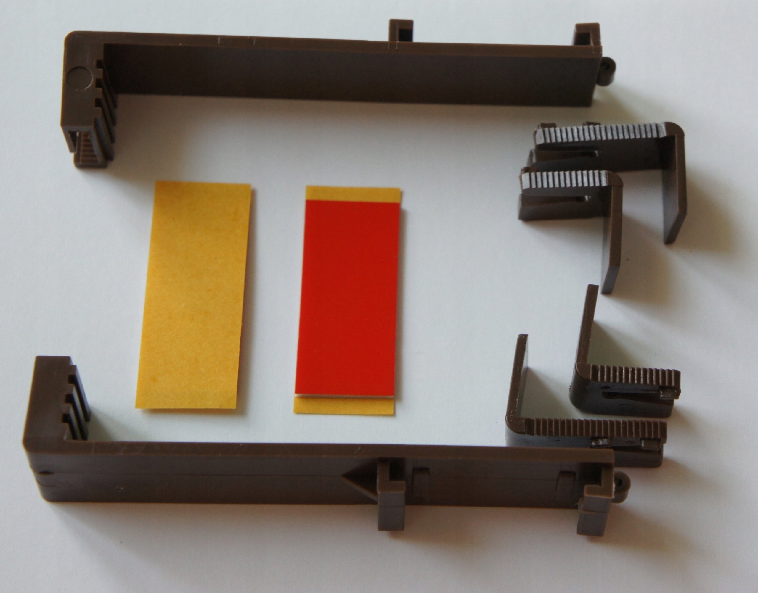 У набір входять самоклеючі кріплення, завдяки яким вся конструкція буде стійкою та довговічною. Виріб виготовлений із пластику. Він стійкий до шкідливого впливу інтенсивного сонячного світла та змінних температур.