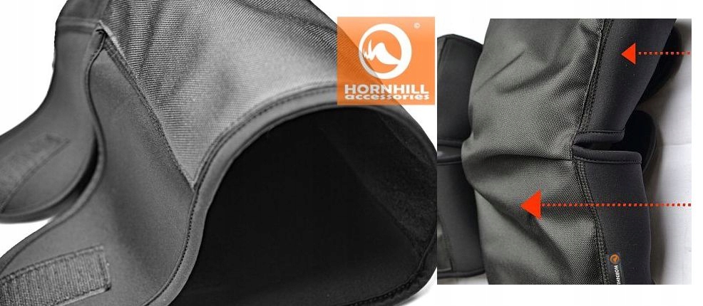 Лицька зовнішня частина наколінників виготовлена з водонепроникної вітрозахисної тканини «кордура», знизу — профільована губка, з внутрішньої сторони. приємний на дотик фліс. Завдяки такому рішенню наколінники мають дуже хороші теплоізоляційні властивості, захищаючи колінні суглоби та гомілки від холоду та дощу.