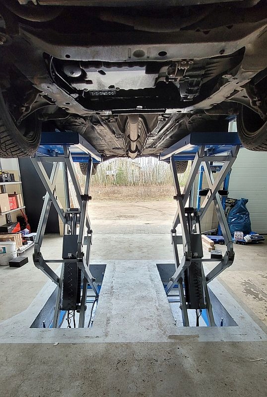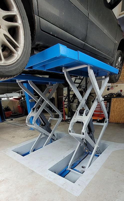 Оскільки він встановлений врівень із землею, він ідеально підходить для автомобілів із дуже низькою підвіскою, наприклад, спортивних автомобілів. Розсувні платформи з обох сторін дозволяють піднімати транспортні засоби з довгою колісною базою.