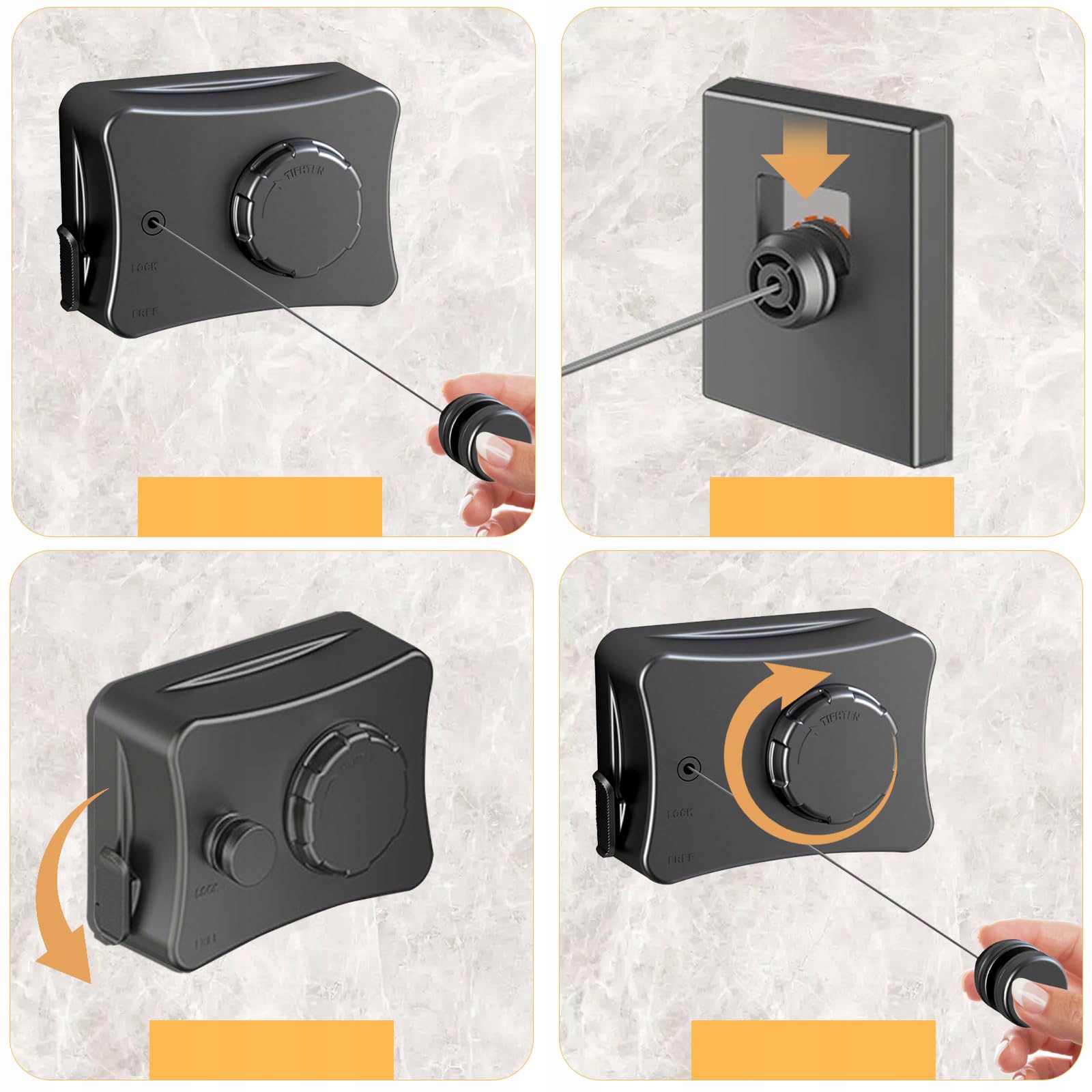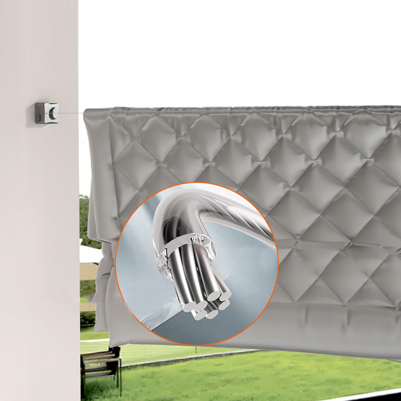 Рядок білизни виготовлений з високоякісної АБС, основи алюмінієвої кріплення та дроту з нержавіючої сталі. Завдяки максимальному довжині 5,1 метра Ця білизна, що пропонує багато місця для повісання одягу, шкарпеток, ковдр тощо. Ця нижня білизна має максимальну вантажопідйомність 20 кг , тому вам не доведеться турбуватися про те, щоб повісити занадто важкий одяг та падіння струни.