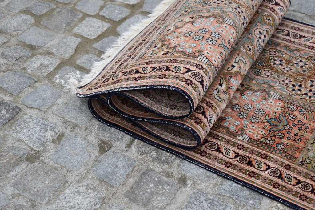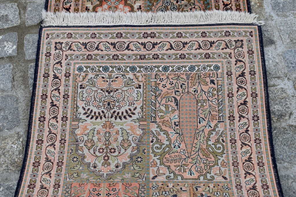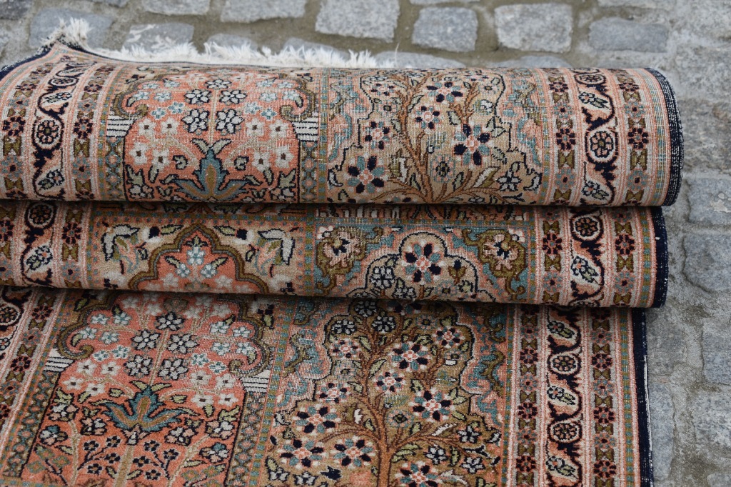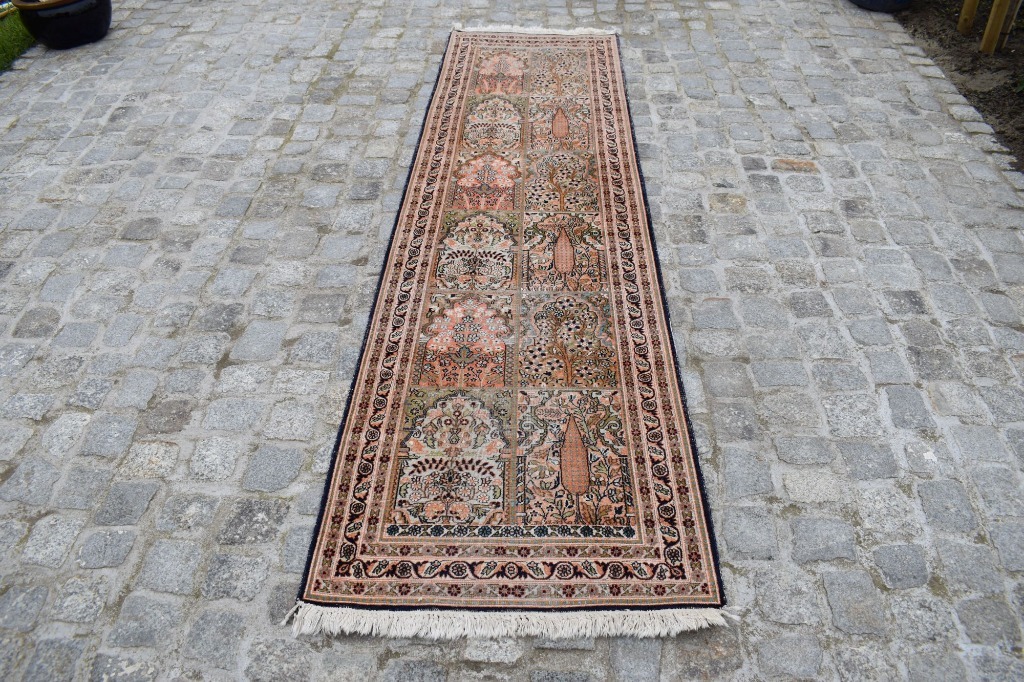ДОВГИЙ ШОВКОВИЙ КАШМІРСЬКИЙ ВІНТАЖНИЙ КИЛИМ РУЧНОГО ТКАННЯ 0,75/2,75 м