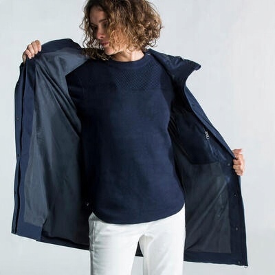 Наші вітрильні дизайнери створили цю довгу жіночу штормову куртку, щоб захистити вас від бризу та помірного дощу під час плавання. Жіноча подовжена штормова куртка, водонепроникна та дихаюча, забезпечить тривалий захист від помірного дощу та під час круїзів.