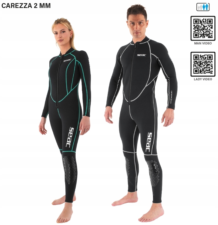 Seac Carezza — це цілісний,довгий водолазний костюм, створений для водних видів спорту, таких як підводне плавання, серфінг, плавання, каякінг.