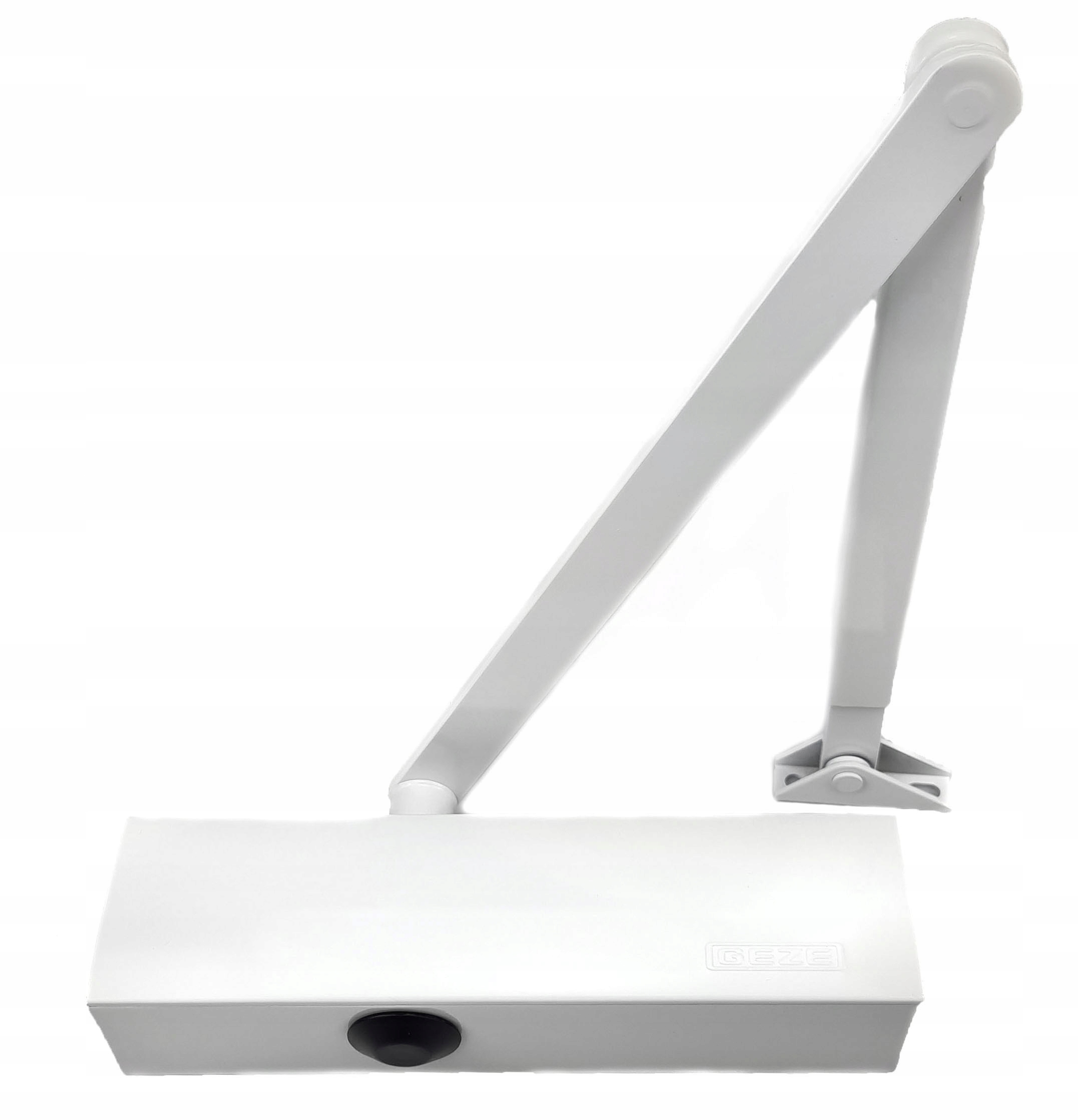 Дверний доводчик білого кольору GEZE 2000 NVBC з ножицею, регульованою силою закривання та закриванням, шириною стулки до 1250 мм та 100 кг.