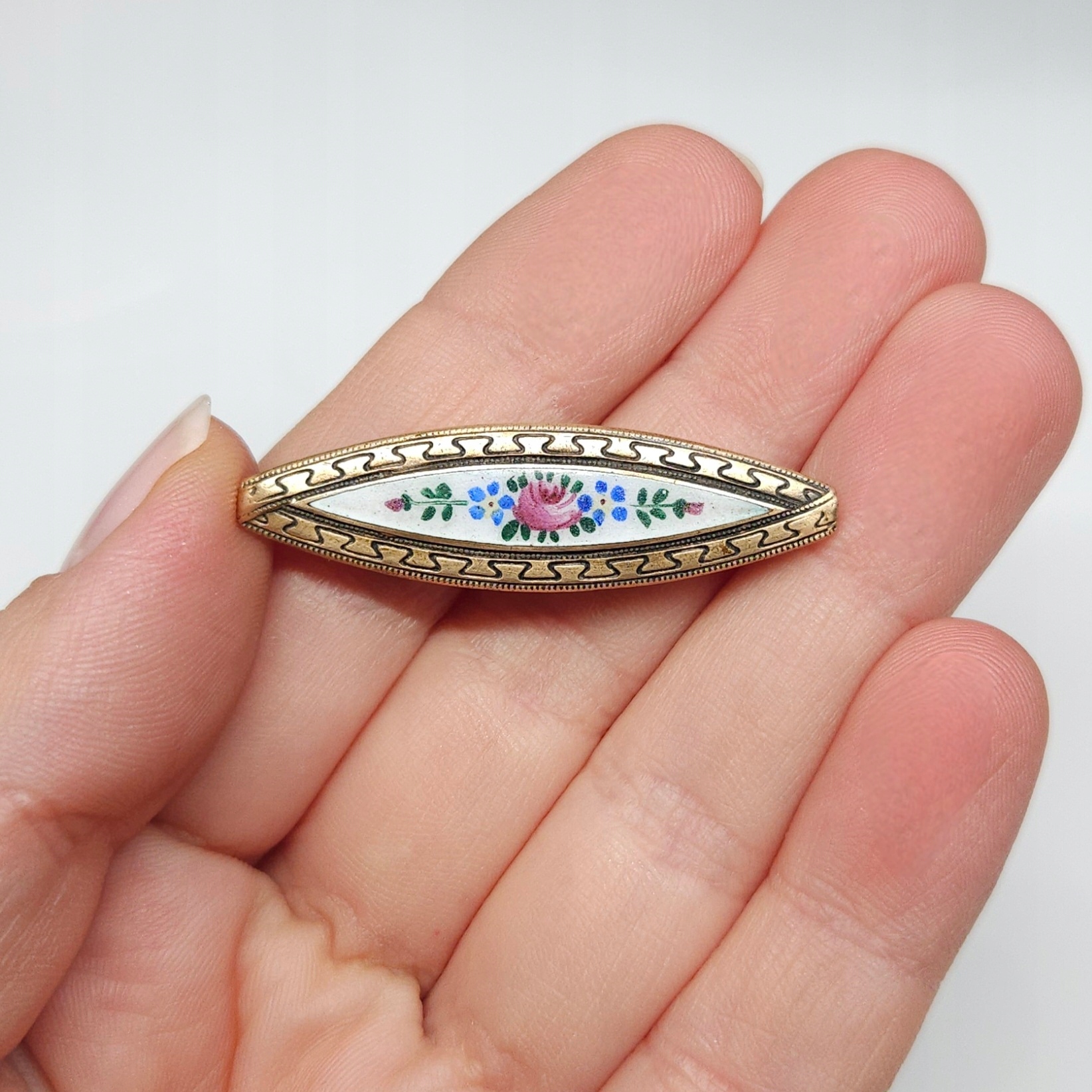 Довоєнна брошка з ручним розписом емалі, позолочена латунь