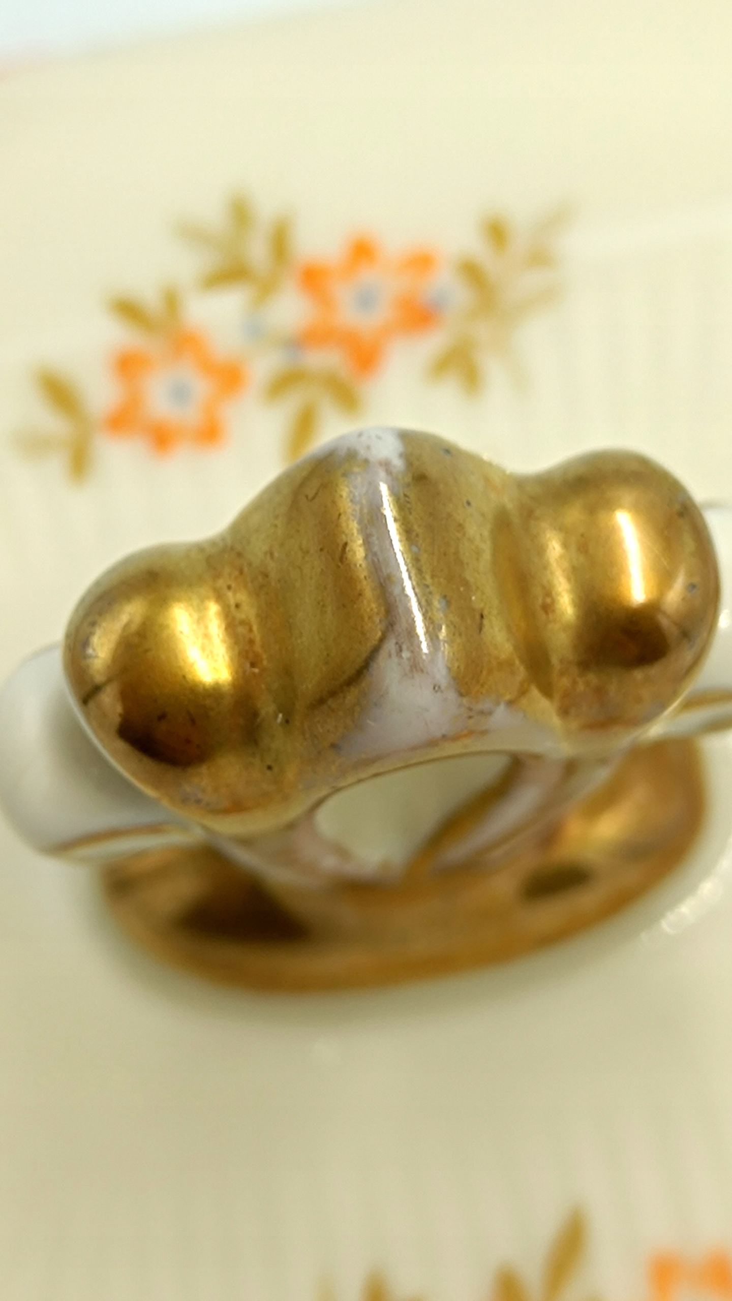 Стан вважається дуже хорошим, але є одне невелике пошкодження в нижній частині основи - видно на останньому фото, а також трохи потерта позолота красивої ручки.