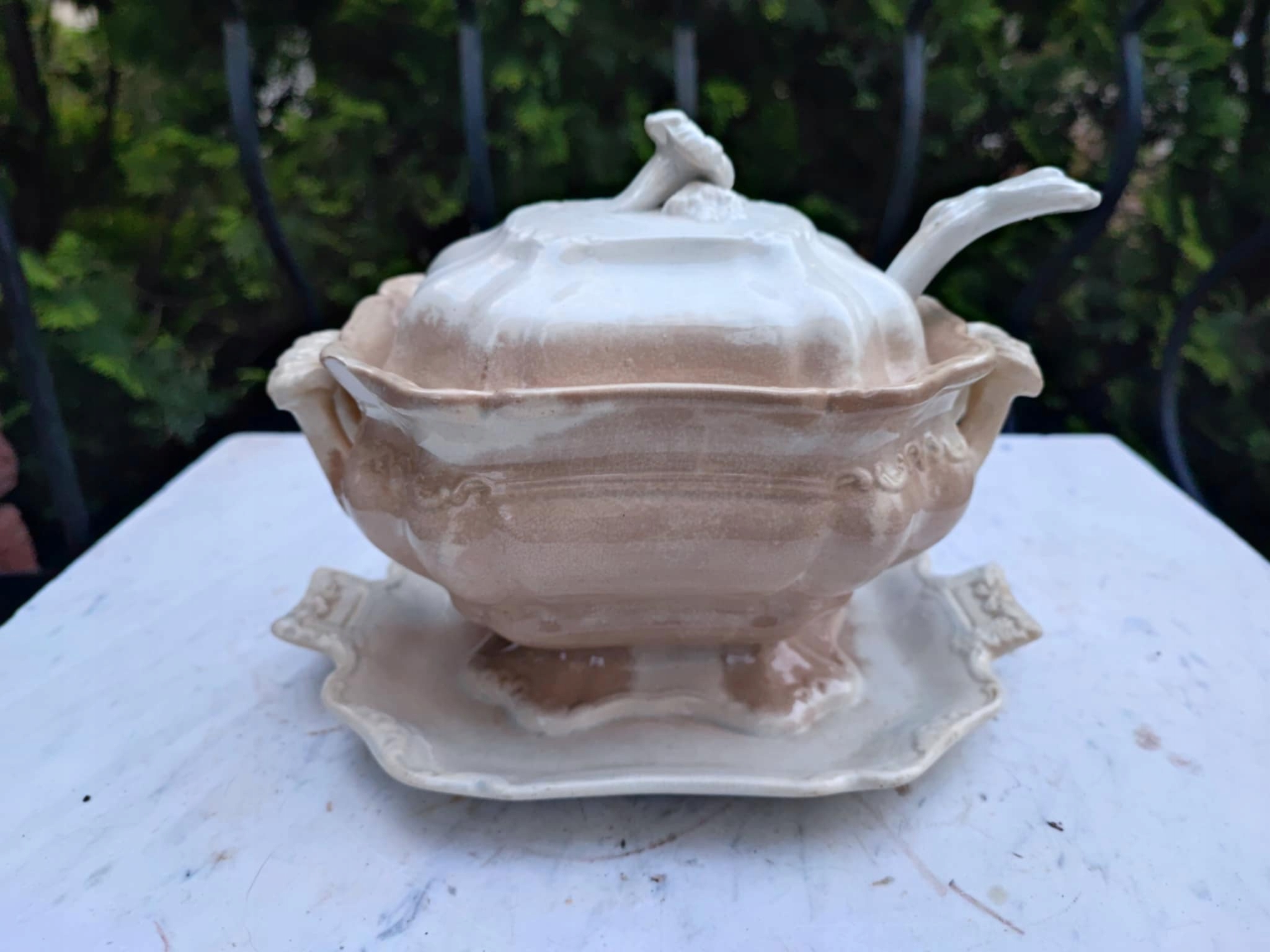 Довоєнна ваза, соусник, Ironstone China, керамограніт, розміри: висота 15,5 см, ширина 21 см, глибина 15,5 см, довжина 18,5 см, ковш 18,5 см, на інших моїх аукціонах ви знайдете інші вази, соусники, дрібнички, абажури та все необхідне для ламп, світильників, люстр, настінних лампи масляні дивіться інші мої аукціони у мене близько 5000 аукціонів все як на фото