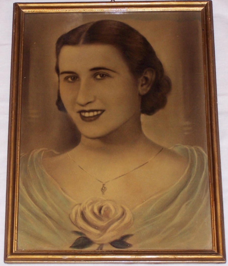 Портрет, живопис , або b>відретушованефото чітко зроблено професіоналом, художником-живописцем-ретушером. Дівчина молода, швидше за все років двадцяти, і, дивлячись на її одяг, зачіску та прикраси, вона походила із заможної родини, що також підтверджує, що такий портрет був зроблений на замовлення. Це, безумовно, дуже цікава річ, однозначно колекційна річ, частина історії якоїсь сім'ї, але в той же час це і красива, декоративна річ, відмінно підходить для прикраси вітальні, спальні або жіночого кабінету а також обслуговуючі приміщення бутік, кравецька майстерня, старовинний ресторан. І звісно, такий портрет можна повісити де завгодно як "портрет предка" і плести легенди про красуню тітку, яка в молодості розбила серця багатьох закоханих... ;-)