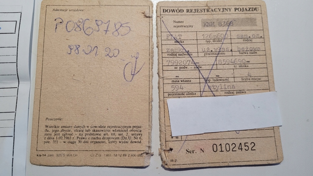 DOWÓD KOLEKCJONERSKI FIAT 126 P 600 1981