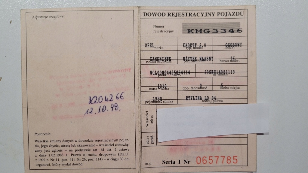 DOWÓD KOLEKCJONERSKI OPEL KADETT 2.0 1994