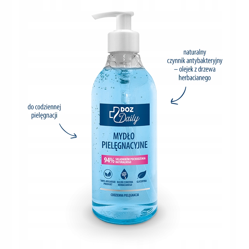 Доглядове антибактеріальне мило DOZ Daily (500 мл) — ефективний косметичний засіб для щоденної гігієни рук і тіла. Формула з доглядаючими речовинами ретельно очищає шкіру, допомагаючи обмежити ріст бактерій. Мило робить шкіру свіжою, зволоженою та приємно ароматизованою, а практичний флакон із насосом полегшує щоденне використання.