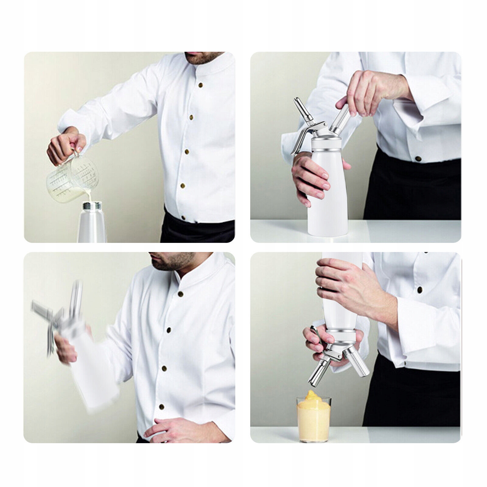 - За допомогою цього диспенсера для вершків ви миттєво отримаєте свіжі вершки та зможете використовувати їх для приготування морозива, кремів, супів, тістечка, масло тощо.