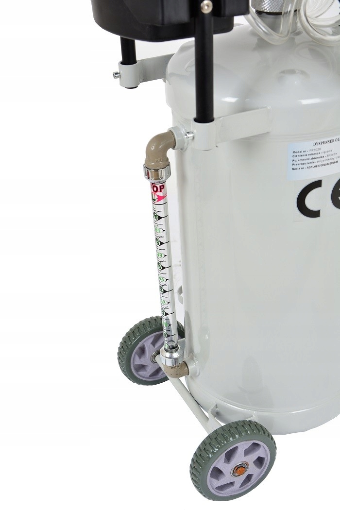 Дозатор масла ємністю 30л від Farys. Пристрій призначений для моторних і трансмісійних масел, має ручний привод і практичну поличку для приладдя. Він має вбудований індикатор масла, тож ми можемо перевірити, наскільки бак наразі заповнений.