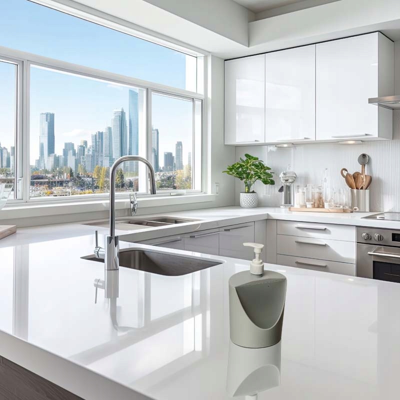 - Елегантний зовнішній вигляд: Сучасна форма дозатора ідеально вписується в будь-який інтер'єр, додаючи естетичний акцент, що робить його не тільки практичним, але й стильним елементом кухонного обладнання.
