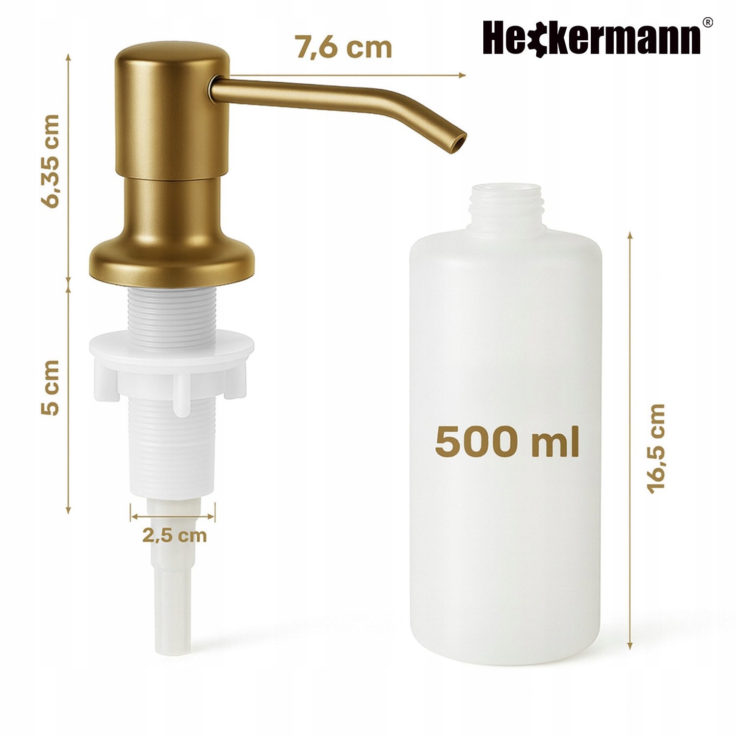 Кухонний диспенсер рідини Heckermann 500 мл – золотий диспенсер для раковини на стільницю