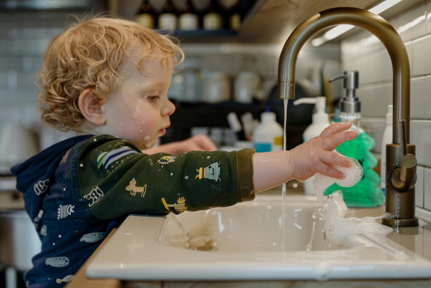 ⛄️Дозатор рідини для миття посуду: його також можна використовувати на кухні, як видно на одному з фото, де дитина використовує дозатор, коли миє посуд.