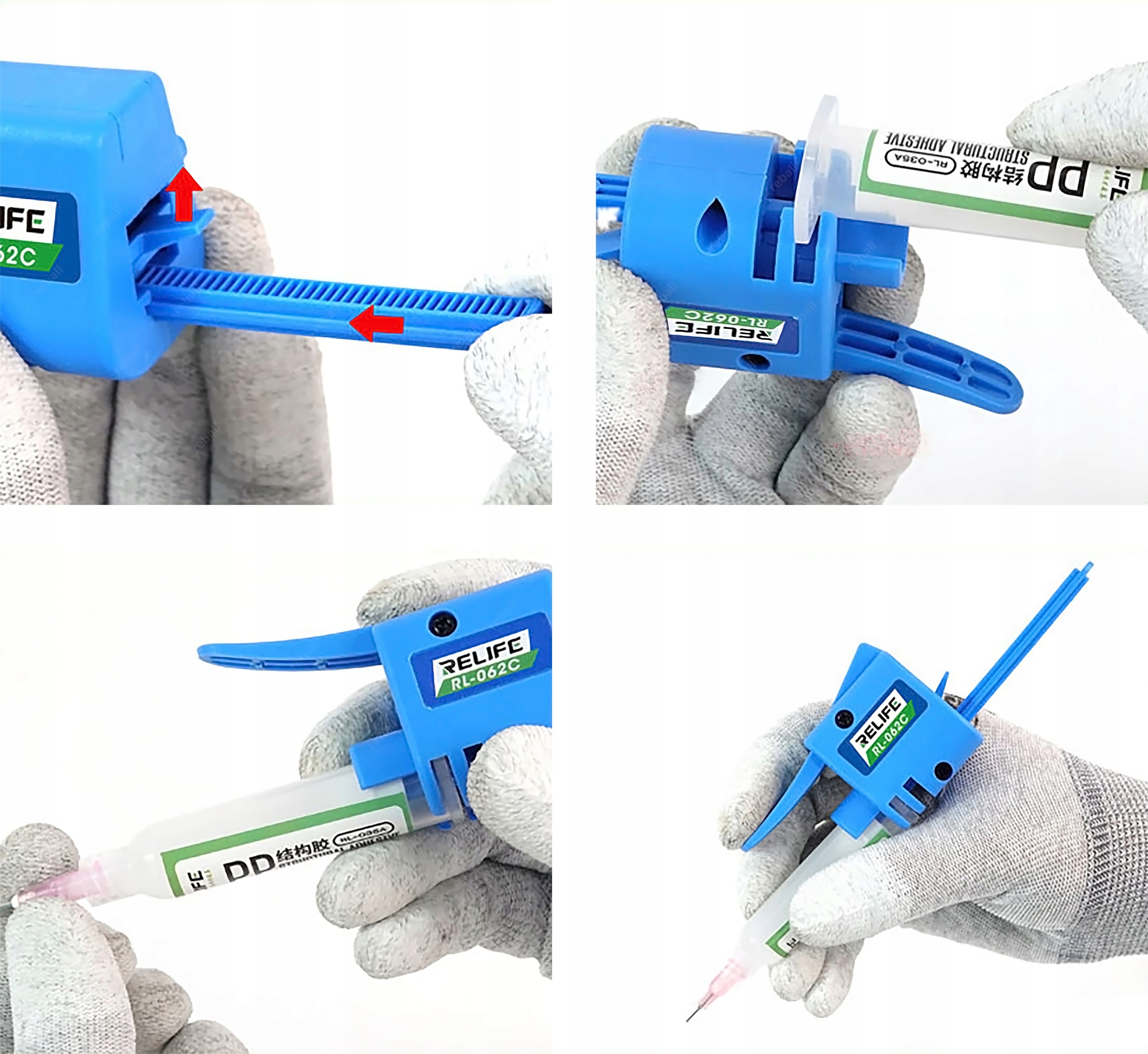 Ручний шприц-пістолет RELIFE RL-062C — пристрій, призначений для точного віджимання рідини з тюбиків або шприців ємністю 3-5 мл